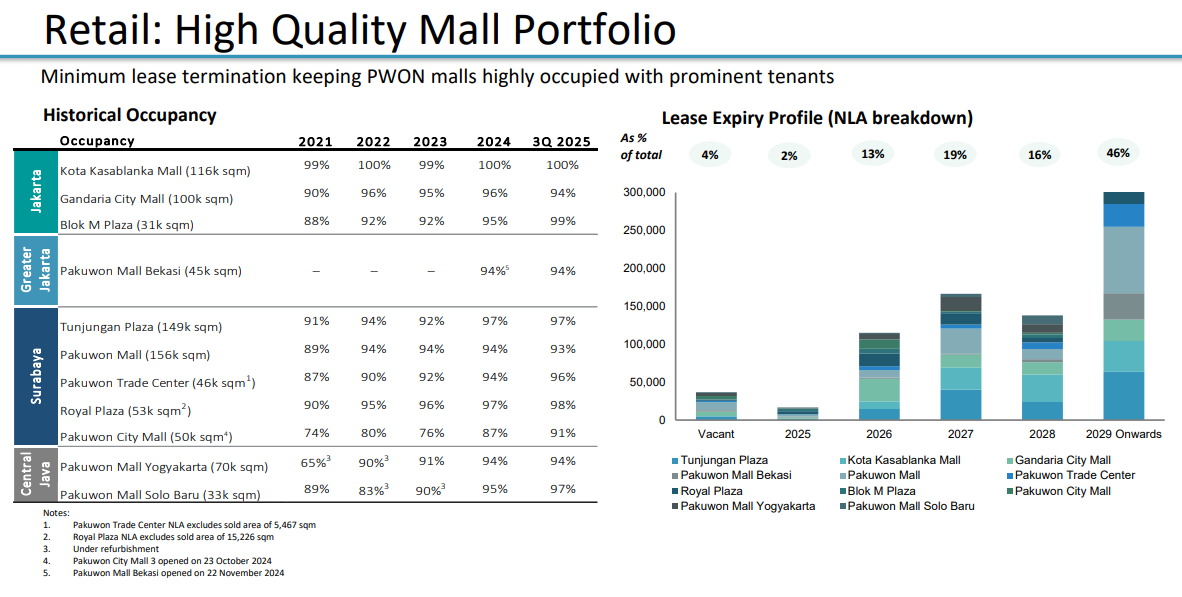 Sampai September lalu, data menunjukkan 46 persen penyewaan tenant masih berlaku sampai 2029 ke atas. Artinya, setengah porsi pendapatan dari recurring income harusnya masih bisa diamankan dalam jangka menengah-panjang.