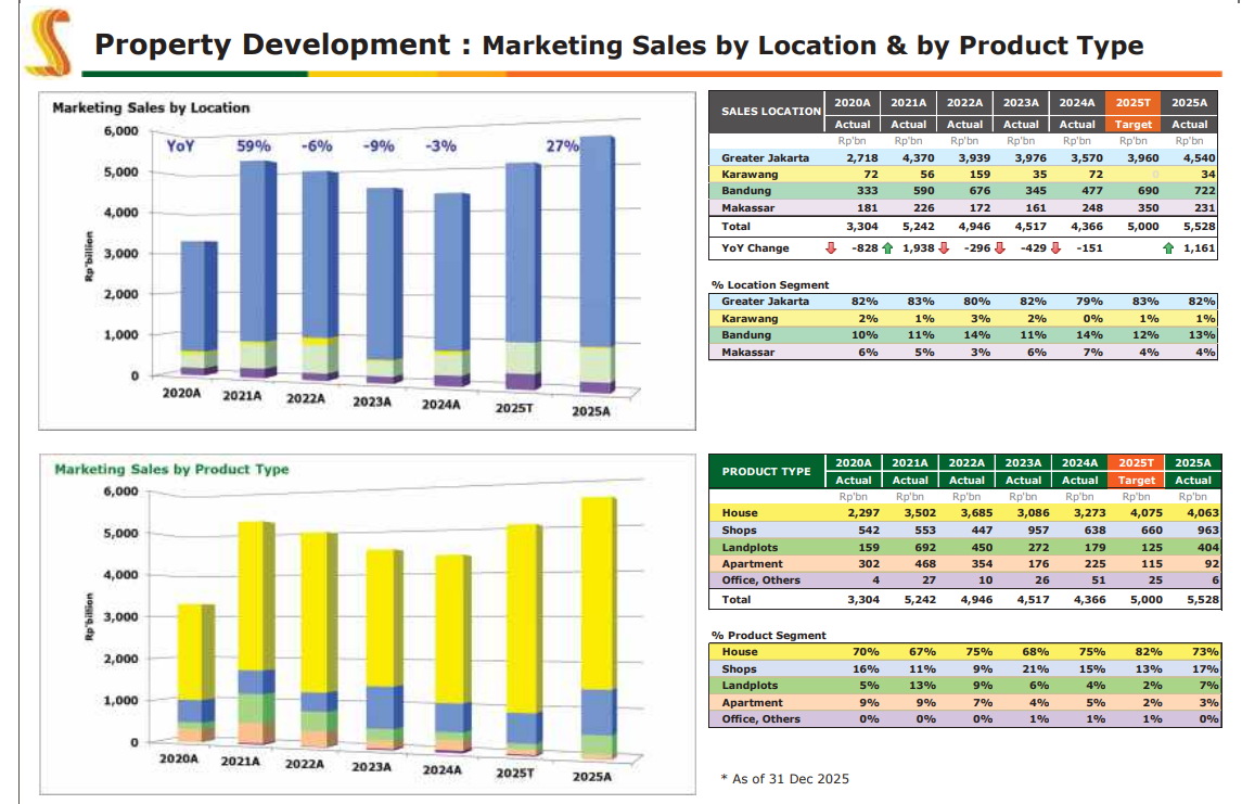 Secara geografis, proyek-proyek di kawasan BSD City masih mendominasi dengan kontribusi sekitar 69 persen dari total marketing sales 2025.