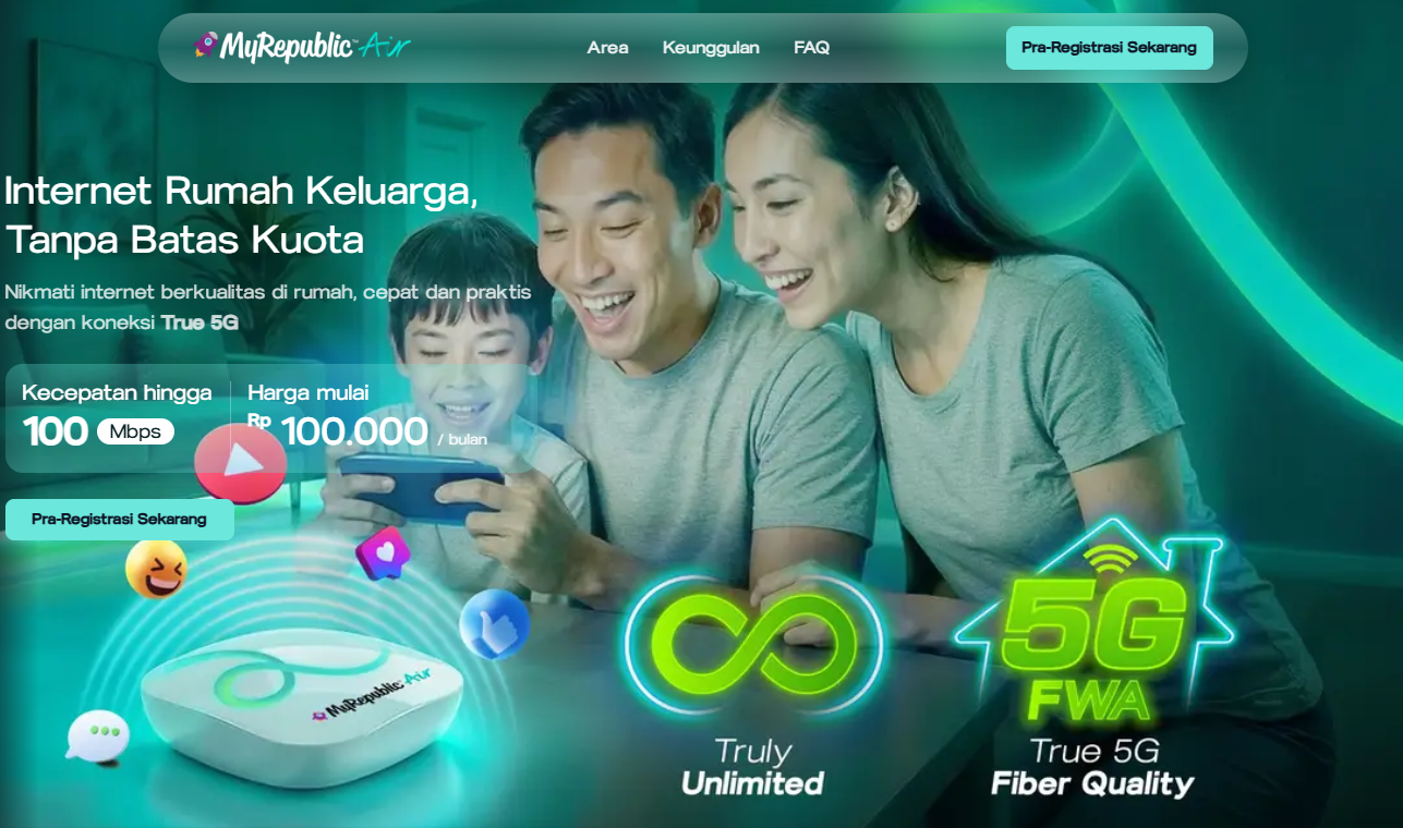 Saat ini, MyRepublic Air masih dalam tahap pra-registrasi dengan menawarkan layanan berbasis 5G FWA berkecepatan hingga 100 Mbps dan harga mulai Rp100 ribu per bulan. Produk ini diposisikan sebagai internet rumah tanpa batas kuota dengan kualitas setara fiber, sekaligus menjadi langkah awal MORA untuk menjaring minat pasar di segmen mass market.