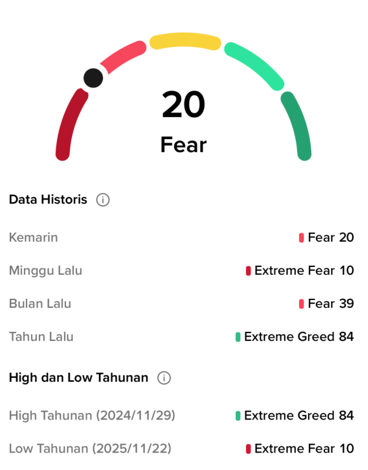 Kedua, rebound BTC ke atas US$90.000 akhirnya membawa pasar keluar dari fase extreme fear. Pada awal November, indeks fear and greed sempat jatuh ke level 10, menunjukkan kepanikan ekstrem.