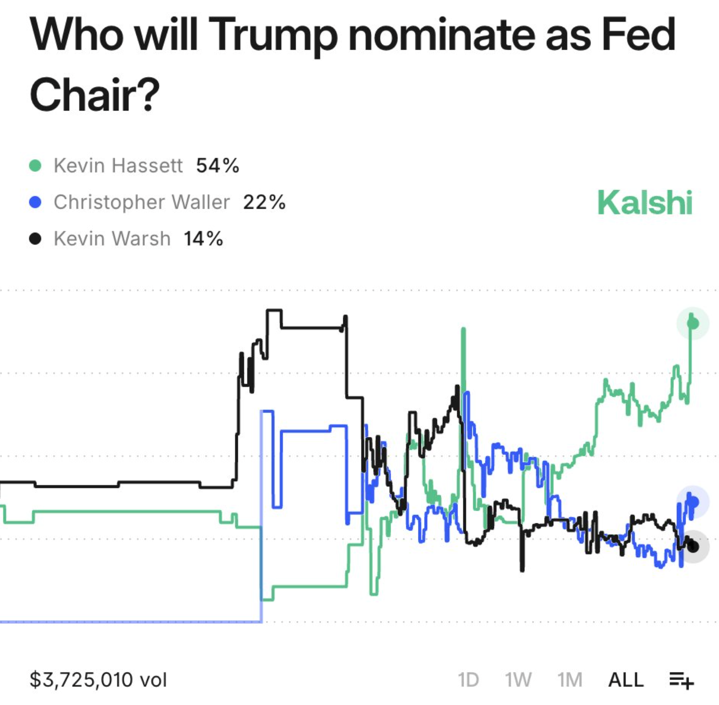 Sejauh ini, Kevin Hasset dinominasikan jadi kandidat paling potensial menggantikan powell dengan peluang 54%.