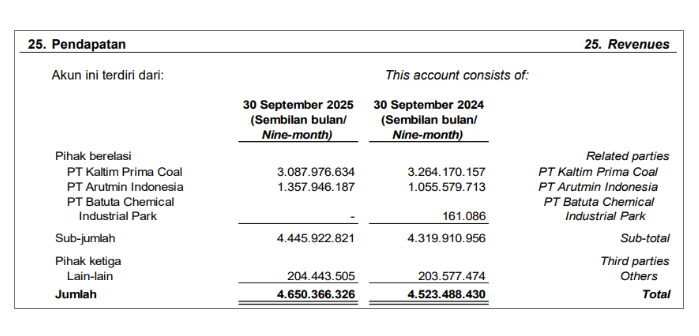 Sebagai catatan, DEWA itu merupakan kontraktor dari dua tambang batu bara milik BUMI yaitu KPC dan Arutmin. Menurut data Laporan Keuangan sampai September 2025, dua tambang itu mendominasi pendapatan DEWA.