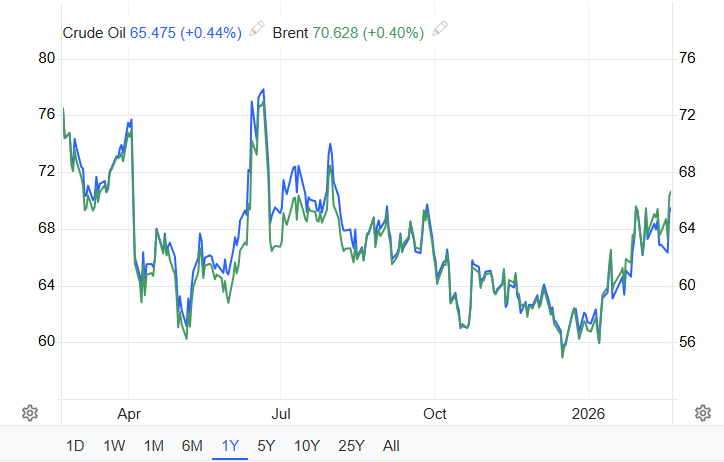 Harga minyak jenis Brent sudah menembus US$ 70 per barel, sementara jenis WTI berada di level US$ 65 per barel, posisi ini sudah mau menyamai posisi tertinggi sejak Agustus tahun lalu.