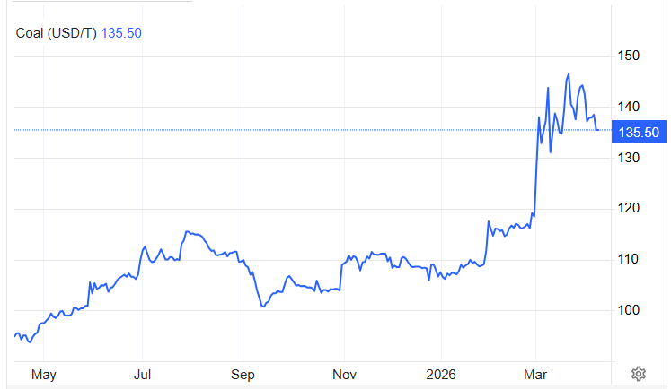 Beralih ke view big pictur, kalau menilik harga batu bara acuan global ICE Newcastle sejauh ini masih bertahan di atas US$ 130 per ton sampai perdangan Jumat (10/4/2026).