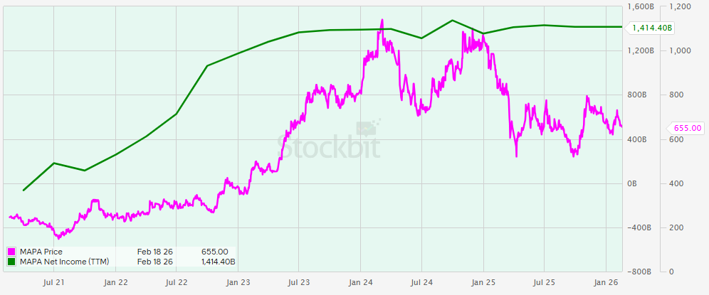 Terakhir, kami melirik saham retail lagi, kali ini PT MAP Aktif Adiperkasa Tbk (MAPA).
