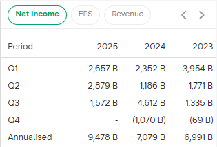 Sebagai catatan, ICBP pada kuartal IV/2024 mengalami kerugian Rp1,07 triliun, sementara pada kuartal III/2025 hanya mencatat laba Rp1,5 triliun, ini termasuk low base karena secara nominal itu terendah dibandingkan dua kuartal sebelumnya dan jatuh siginifikakn dibandingkan kuartal III/2024 yang bisa mencetak laba lebih dari Rp4 triliun.