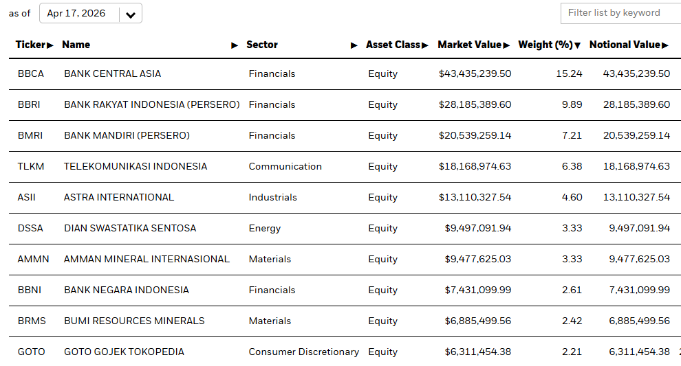 Bisa perhatikan di sini untuk deretan saham MSCI dengan porsi terbesar:
