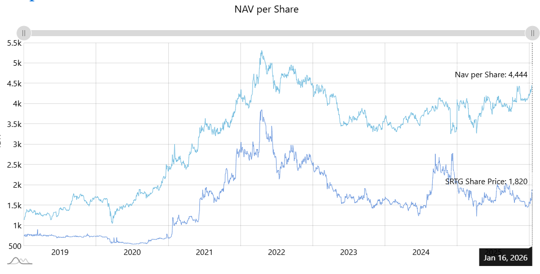 Namun perlu dicatat, struktur pendapatan SRTG berasal dari dua komponen utama yaitu capital gain/loss investasi dan dividen.