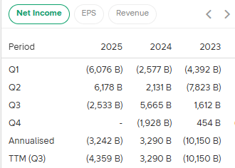 Secara total, sampai September 2025, SRTG membukukan rugi sekitar Rp2,9 triliun, berbalik dari laba Rp6,6 triliun di periode yang sama tahun lalu.