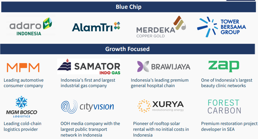 Sebagai catatan, SRTG itu merupakan perusahaan Private Equity yang bersifat aktif, artinya perseroan tidak hanya sekadar investasi, tapi juga mengembangkan bisnisnya. Mereka membagi perusahaan yang disuntik investasi menjadi dua macam yaitu bluechip dan growth focused sebagai berikut :