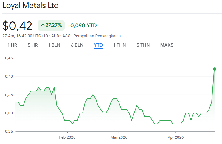 Sebagai informasi, Loyal Metals tercatat di bursa Australia (ASX) dengan kode saham LLM.